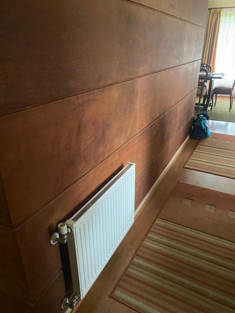 Calefacción central con radiadores en todas las habitaciones, alimentada por caldera a gas.